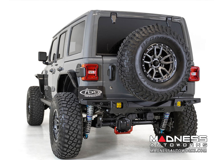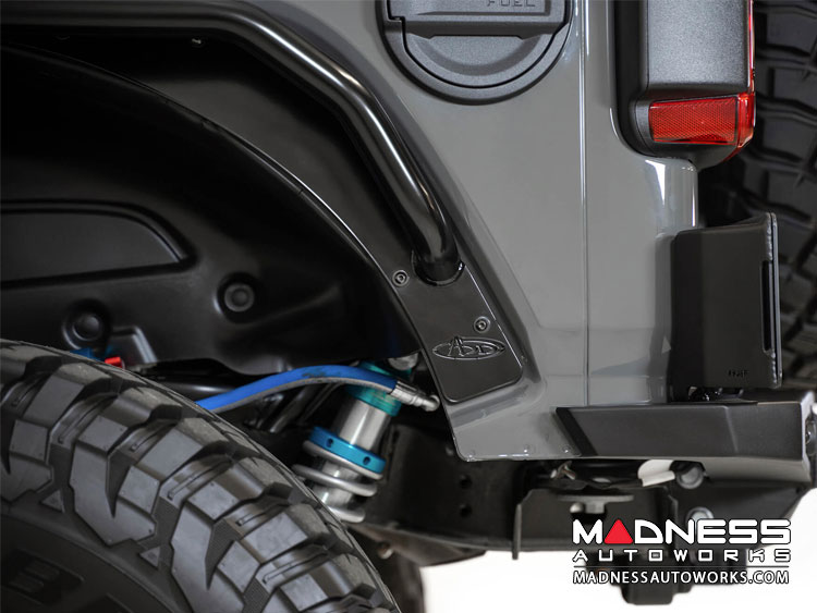 The Addictive Desert Designs Stealth Fighter rear fenders take the same low-profile look of the front fenders and bring it to the rear of the Jeep. A combination of .120" wall tubing and plate steel are used to follow the OEM body lines of the Wrangler JL.