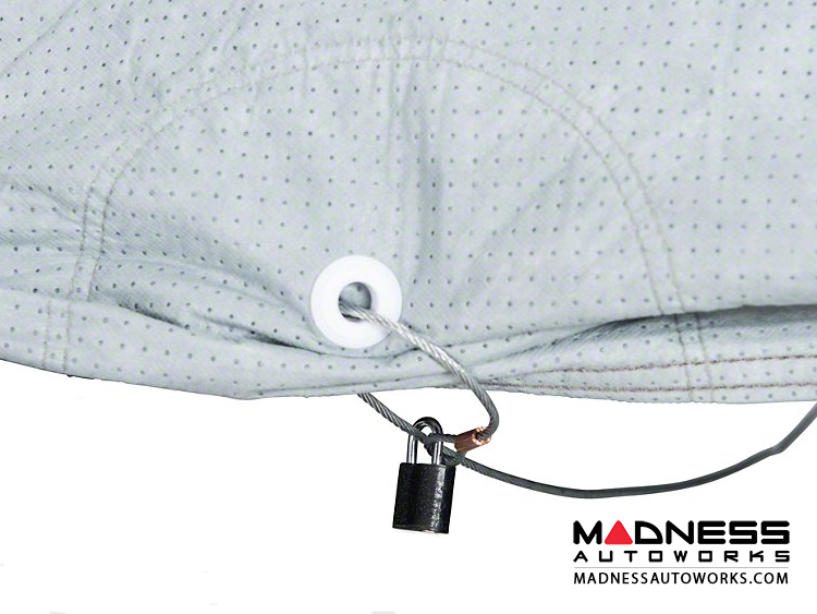Installation. This Rugged Ridge car cover does not require drilling. It features reinforced elastic side straps to keep the cab cover intact and in-place. This kit includes a storage back, lock and cable to keep your cover on and prevent unwanted theft while in storage.