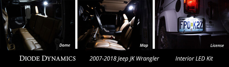 Revamp your driving experience with the Jeep Wrangler JK - DIO Replacement Bulbs. These LED replacement bulbs are designed to enhance the interior aesthetic of your Jeep, providing a more modern and vibrant appearance while delivering superior performance compared to traditional incandescent bulbs. This exclusive Interior LED Bulb Pack is carefully crafted to replace your factory map, dome, and license plate lights with ease.