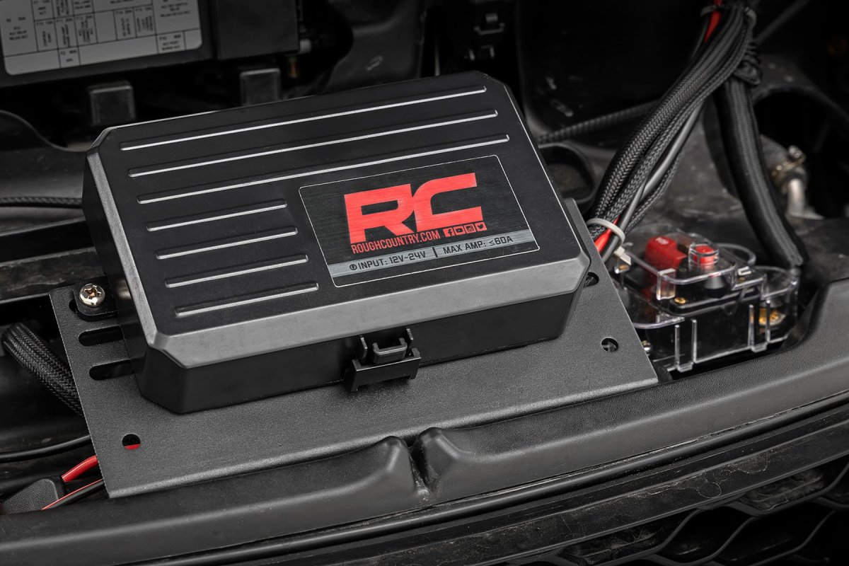 Installation with Rough Country’s 8-gang switch panel is made easy, with no cutting or drilling required. This user-friendly kit can be set up with common tools in approximately 3-4 hours, saving you time and the hassle of complex installations. Additionally, this innovative controller comes equipped with a robust wiring harness and hardware, ensuring you have everything needed for a complete setup. The controller's IP65 waterproof rating ensures durability and reliability, regardless of external conditions.