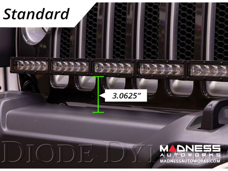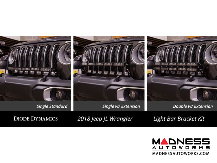The Bumper LED Light Bar Kit for the 2018+ Jeep Wrangler from Diode Dynamics allows you to mount either a single SS30 Stage Series 30" LED Light Bar or dual Stage Series 30" LED Light Bars on the factory front bumper. These application-specific brackets were CAD-designed to install using factory mounting points. No cutting or drilling required!