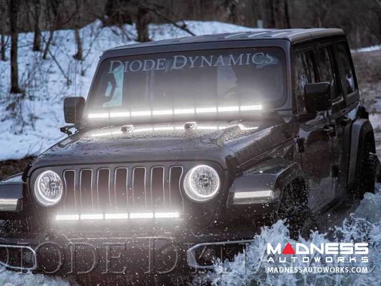 Perfect fitment. The Hood LED Light Bar Kit for the 2018-2019 Jeep Wrangler from Diode Dynamics allows you to easily mount a 50" Stage Series light bar (included) across the hood. These application-specific brackets were CAD-designed to install using factory mounting points. No cutting or drilling required! When installed along with our fully-customizable JL Wrangler Cowl Mount Brackets, you can easily mount multiple pods on either side of the 50" light bar as well.
