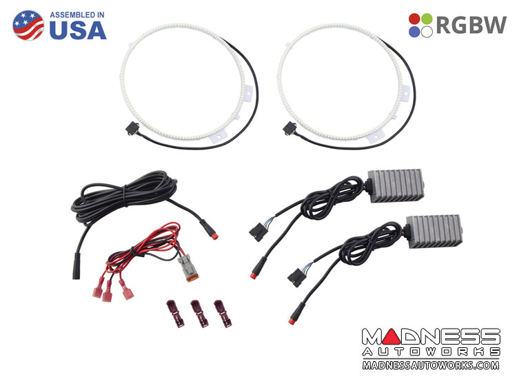 This halo replaces the illuminated light pipe inside the headlight and features independent white LED chips for true RGBW functionality. This means you can choose from thousands of custom color options, and instantly return to a pure, bright white for on-road use!