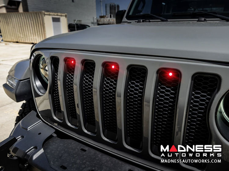 This kit allows you to add 3x LED Marker Lights to the front Grill of your Jeep Wrangler JL without any cutting or drilling. These super-bright 3-Watt LEDs make your Wrangler stand out and can be connected to your parking lights, Daytime Running Lights, or to an Auxiliary Switch.