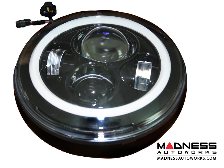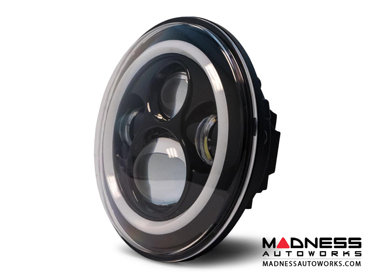 LED projector headlights are a huge upgrade from stock JK headlights in both brightness and style. They use advanced optical technology to make the most of the LED lights that are housed within them. This "projector" sends a bright and useful pattern toward the front of the Jeep allowing you to see almost twice the distance of a stock headlight. Many also prefer the white light that these headlights give off rather than the amber color from standard headlights. The lights are available with and without a white halo and both styles come with a full harness to allow for simple and easy installation.A pair of LED Projector Headlights will not only look better but will be a significant change in the brightness department. These lights project a bright white light beam that rivals the stock headlights by allowing you to see almost twice the distance.