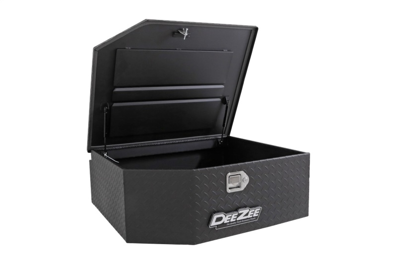 Dee Zee Tool Box -Jeep boxes. Constructed of heavy duty Brite-Tread aluminum. Texture black powder coat, provides a matte black finish while it protects and prevents oxidation. Crown style lid with a full pan double-V stiffener for superior rigidity. Convenient side handles for easy transport. Other features: lockable stainless steel paddle handles, dampened gas shocks, closed cell foam gasket, and self-adjusting strikers. Removable plastic tool tray to help keep small items organized.. Deezee 07-23 Jeep JK/JL Tool Box - Specialty Jeep Box Wide (Txt Blk). Specialty Series Wide Tool Box;. Specialty Series Wide Tool Box. Truck Tool Box. Tool Box