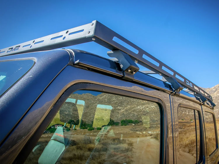 DV8 Offroad’s 4 Door JL Roof Rack offers utility and ease. With a no-drill design, this roof rack gives you the ability to put on or remove the roof rack in minutes. Extending almost the full length of the JL, this roof rack provides the maximum storage available. With a weight limit of 200lbs evenly distributed, you can toss all your camping gear that doesn’t fit into the Jeep, on top!
