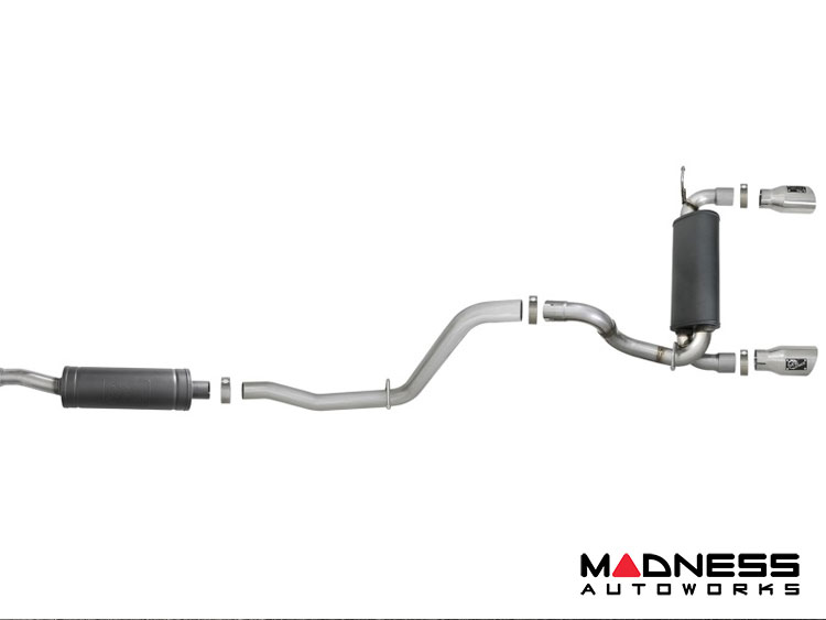 This dual rear-exit system features 4-1/2" diameter, polished, angle-cut, rolled stainless steel exhaust tips w/ laser-cut aFe POWER badge for a custom-styled look.
