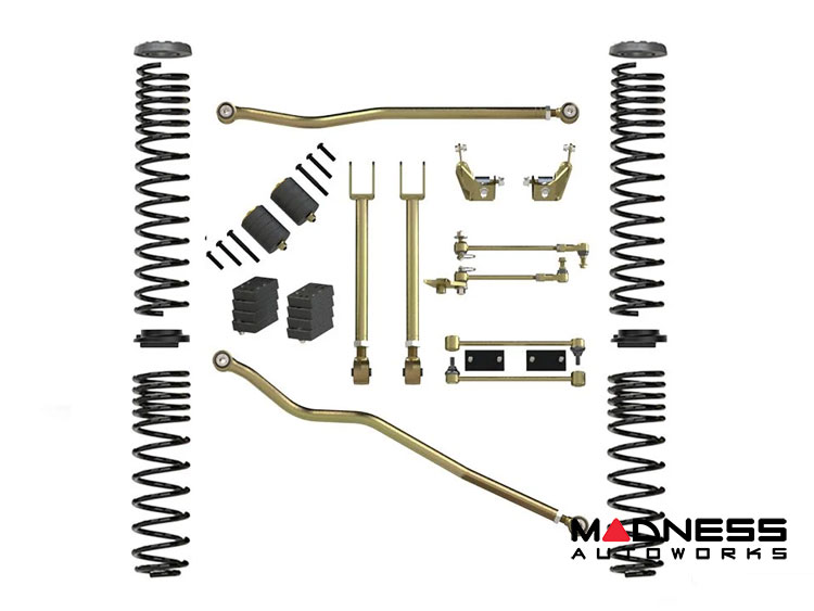 A perfect kit so you can enjoy your Jeep Wrangler JL with a lift now, with opportunity to build on for the future. This is a mid lift height for mild off-road use, made with top level parts. Featuring patented Technology available nowhere else.