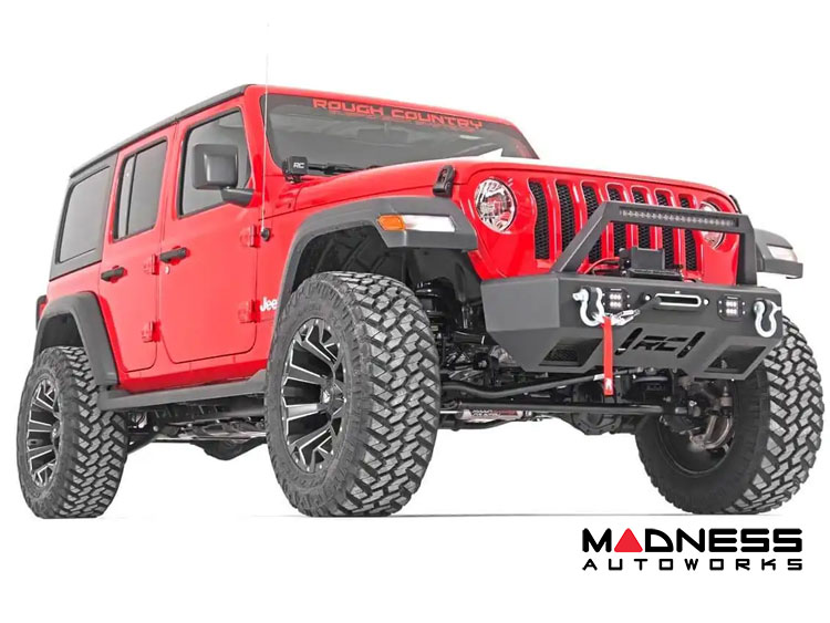 Please note that an aftermarket driveshaft is HIGHLY RECOMMENDED for installation of any Jeep JL lift kit 3.5" or taller. The factory driveshaft may become damaged if the suspension reaches full droop or flex. We recommend using Rough Country's Jeep JL front CV driveshaft 5090.1A to ensure optimal performance and durability.