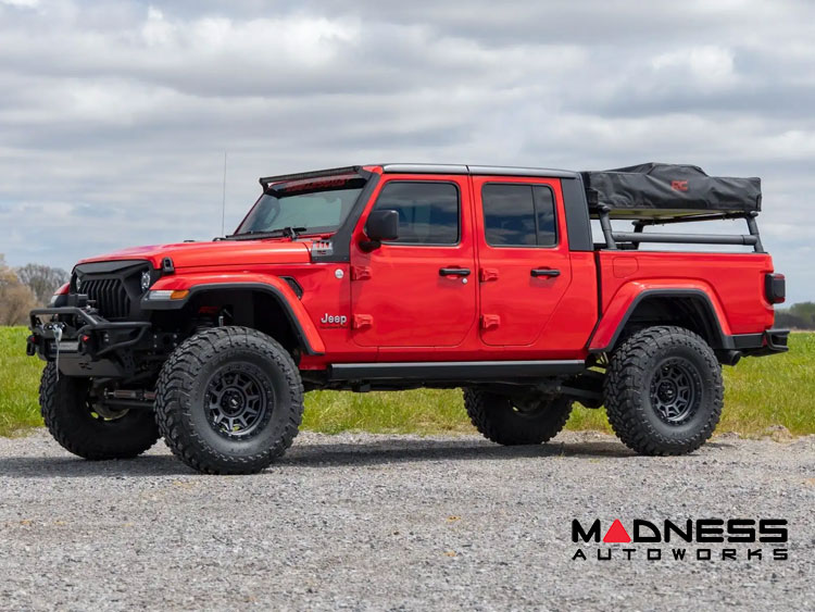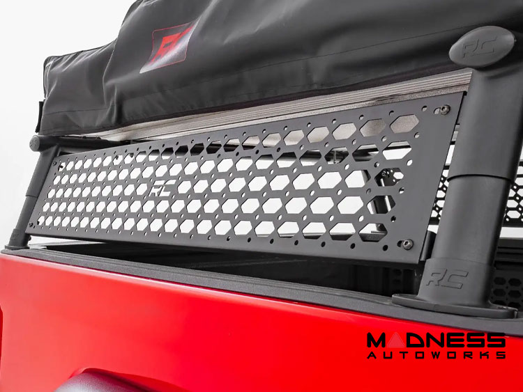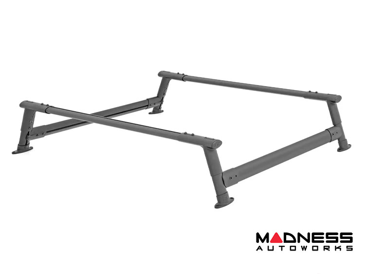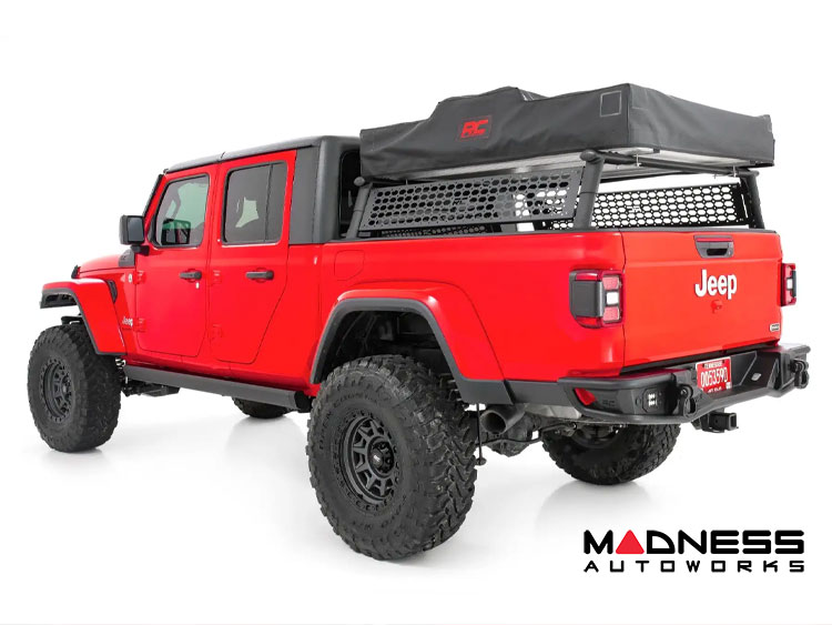 The Jeep Gladiator JT - Bed Rack - Aluminum - Half Height from Rough Country is the perfect solution for those looking to maximize the cargo carrying capacity of their truck bed. Made from powder-coated aluminum, this bed rack offers lightweight strength and durability, making it ideal for a variety of outdoor activities.