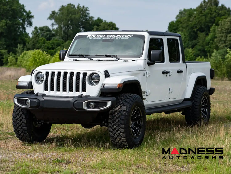 Enhance the look and performance of your 2024 Jeep Wrangler Gladiator JT with Rough Country’s 2.5in Suspension Lift! This leveling kit is the perfect choice for those looking to run 35in tires with ease while gaining extra ground clearance for off-road adventures.