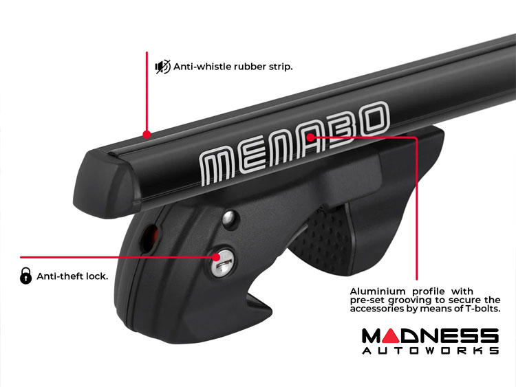 These Cross Bars are designed specifically for the Jeep Renegade. This version is designed for models that came equipped with the optional factory roof rails.