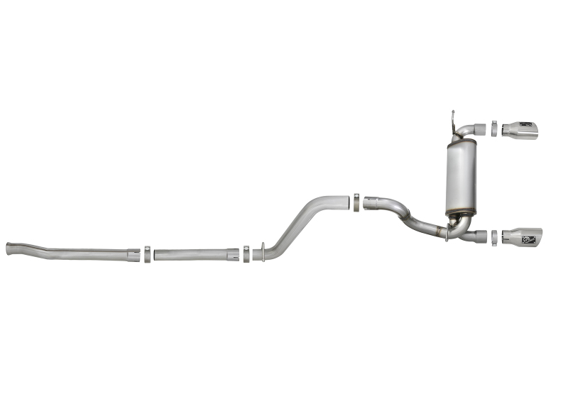 - Dual 4-1/2" stainless steel clamp-on tips with aFe POWER logos