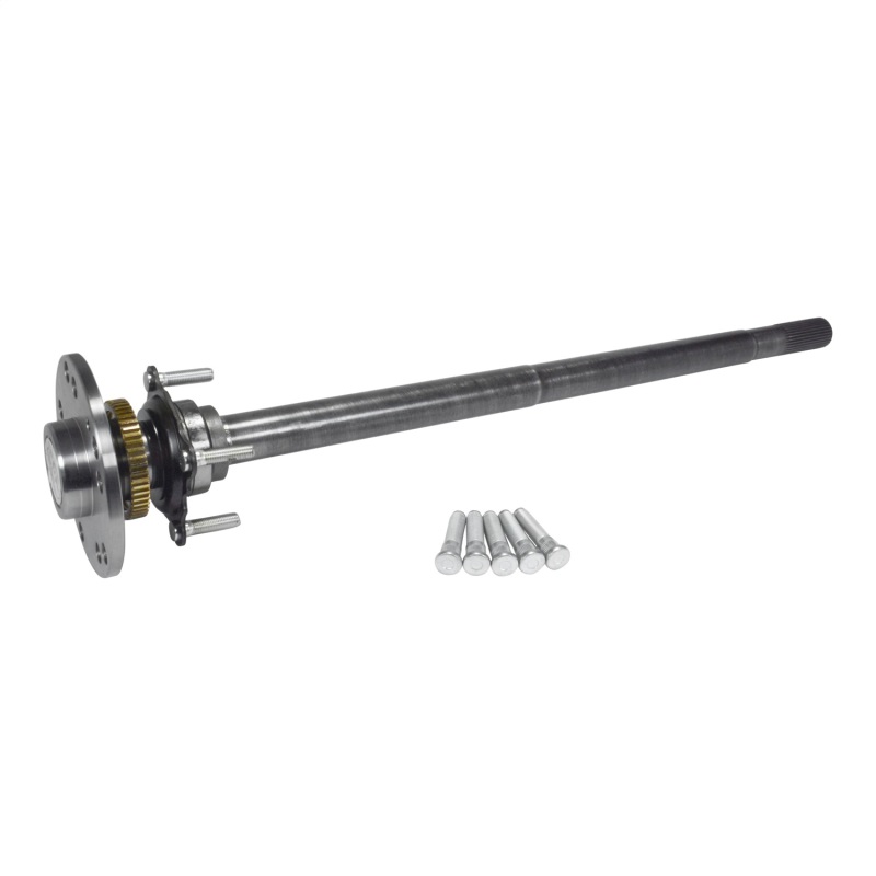 Yukon high-performance axles are built with high-tensile strength 4340 chromoly, use superior production methods that include cold roll formed splines, and feature advanced induction coil heat treating to create an axle of unmatched quality and durability. . Yukon performance axles are built with high-tensile strength 4340 chromoly; use superior production methods that include cold roll formed splines; and feature advanced heat treating to create an axle of unmatched quality and durability.. Yukon performance axles are built with high-tensile strength 4340 chromoly, use superior production methods that include cold roll formed splines, and feature advanced heat treating to create an axle of unmatched quality and durability.. Yukon 4340 Chromoly axle for Jeep Non-Rubicon JK rear. 30 spline, 32" long. Fits left or right hand side. Includes axle bearing and seal, ABS ring, retainer and studs. . ,30spl,32,4340,5x5.0,AX:D44JK-R-30LR,AXLE,D44,JK,KIT,LH or,NON,REAR,RH,RUBICON,YA,. Yukon Chromoly Rear Axle Kit, Dana 44, Jeep JK Non-Rubicon, 30 Spline, 32” Long . Yukon Chromoly Rear Axle Kit; Dana 44; Jeep JK Non-Rubicon; 30 Spline; 32in. Lon. Yukon Gear 4340 Chromoly Axle for Jeep Non-Rubicon JK Rear 30 spline 32in Long. Includes axle shaft, axle bearing and seal, ABS ring, retainer, and studs . Incl. Axle Shaft; Axle Bearing And Seal; ABS Ring; Retainer; And Studs. D44 JK NON-RUBICON 4340 REAR AXLE KIT, LH or RH, 30spl, 32" 5x5.0" . NOTE: Assembly required. This part does not ship assembled.. Heavy duty 4340 chromoly construction. Fits Dana 44 Differential. 5 X 5.0 in. Bolt Pattern. Yukon Gear & Axle Shaft. 5 x 5.0” bolt pattern. For left or right side. Measures 32 in. Long. Measures 32” long. Chromoly Axle kit . Drive Axle Shaft. YA WD44JKNON-K . 30 spline. 17-07 JEP