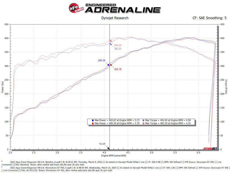 Designed to increase horsepower, torque, and throttle response, this cold air intake system provides your engine with a steady stream of cooler, denser air. The result? More power and better performance, whether you're hitting the trails or cruising down the highway. With its easy bolt-on installation, this Momentum GT cold air intake system is a must-have upgrade for any Jeep Grand Wagoneer owner looking to maximize their vehicle's potential.Large Three Layer Performance Air Filter:Momentum’s unique filter-to-housing interface was built to feature the largest air filter possible. This 9” tall 360-degree radial flow air filter features our oil-free Pro DRY S media with three layers of synthetic media for maximum convenience. Its progressive layering provides great filtration efficiency and dust holding capacity, while not requiring the use of oils. This media is best suited for street use. Its inverted top makes for more filter surface area, resulting in longer service intervals. This media is best suited for street and light off-road use.Unique One-Piece Housing:The smooth one-piece sealed housing, constructed of heat-resistant cross-linked polyethylene (XLPE), features our patent-pending filter-to-housing interface. Its innovative design minimizes the total number of parts, making for an easy installation. A large, clear sight window allows for hassle-free filter inspection, without having to disassemble your system.Hassle-Free Installation:This intake is designed to use factory mounting locations, minimizing the use of unnecessary hardware, ensuring a perfect fit every time. Its revolutionary design, featuring our patent pending filter-to-housing interface uses half the number of parts of a traditional cold air intake system.Premium Components:Stainless-steel worm clamps are included for strength, and a premium silicone coupling allows for ample flexibility.. aFe 22-23 Jeep Grand Wagoneer (WS) V8 6.4L Momentum GT Cold Air Intake System w/ Pro DRY S Filter. Momentum GT Cold Air Intake System w/ Pro DRY S Filter Jeep Grand Wagoneer (WS) 22-23 V8-6.4L. Innovative Filter-to-Housing Interface and Minimal Hardware for Fast & Easy Installation. Large Clear Sight Window for Convenient Filter Inspection Without Disassembly. Sealed Housing Incorporates Factory Air Scoops Inlet and Auxiliary Air Inlet. Utilizes Factory Mounting Locations for an Easy and Secure Installation. Washable and Reusable Pro DRY S Air Filter for Maximum Convenience. Momentum GT Cold Air Intake System w/ Pro DRY S Filter. Momentum GT Cold Air Intake System. Momentum GT Intake