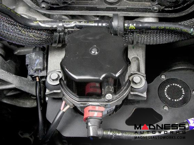 - Durable 3mm thick steel bracket mounts the catch can securely while maintaining short hose runs