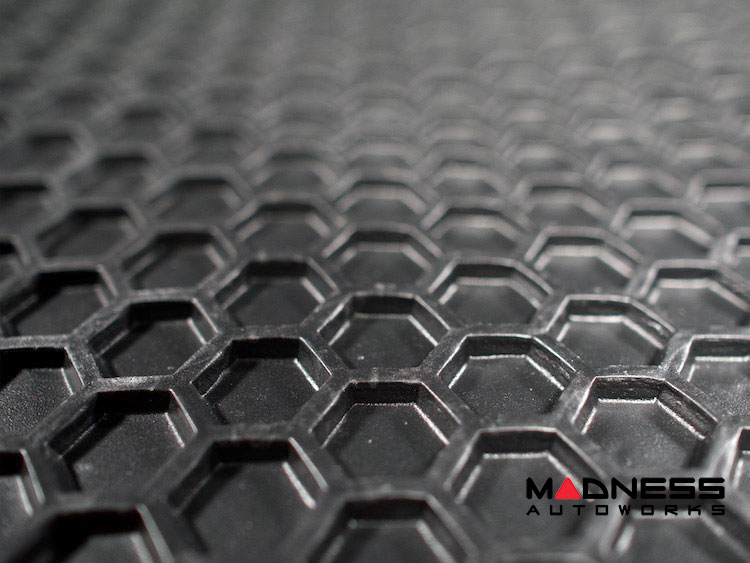 Molded from a space-age rubber composite, these Floor Mats are both flexible and durable. This unique material means HEXOMATS car mats won't fade, crack or otherwise deteriorate. They're custom-contoured to the shape of your floor pan for maximum coverage in a low-profile design-no clumsy tall outer rim.