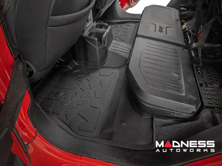 Designed for those who demand durability and high performance, these floor liners are crafted from a premium, rubber-like material that stands up to life’s toughest challenges. Whether you're navigating muddy trails or braving winter roads, these liners provide the perfect combination of rugged protection and seamless style, tailored specifically to the unique contours of your Jeep Gladiator JT.