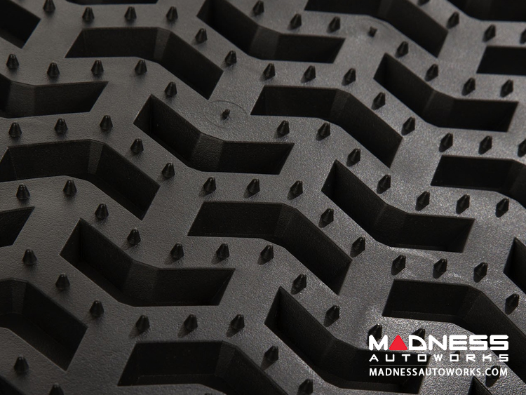Chevron-Shaped Treads. Utilizing a Chevron-shaped tread and a raised lip style, this rear floor liner is effective in preventing liquid spills and other staining substances from reaching your floor interior. It also comes with high perimeter walls for better water retention and full floor coverage.