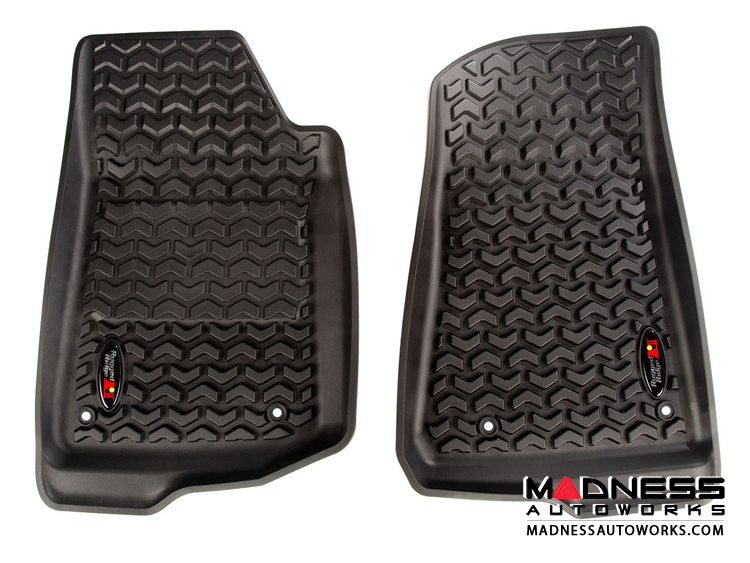 These newly designed floor mats are precisely formed to your Jeep's floor and provides unmatched protection from the elements. With high side walls that contour to your Jeep's body tub, these Mats easily trap and contain any water, mud, or other fluids that could damage or dirty your carpets.