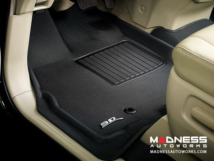 Unlike the traditional floor liners with heavy weights, commercial rubbery looking; 3D KAGU all-weather custom fit floor liners are the revolutionary interior protection for your vehicles with an innovative, unique three-layer structure. The digitized three dimensional design measured to exact cabin contours of your vehicle for trapping mess and spills. The patented anti-skid bottom layer keeps mats in place without harming the original carpet and without leaving marks like nibs of traditional rubber floor mats. Surface layers made of Thermoplastic Rubber of carbon fiber texture to complement different vehicles as the unique style you desired. The innovative XPE inner layer minimizes foot fatigue and provides the sound barrier for a quieter ride; yet the material is non-toxic and odorless.