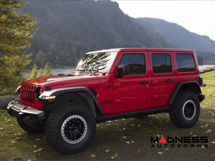 • Offers an additional 3/4" of clearance over factory Rubicon front flares and 2" over non-Rubicon models
