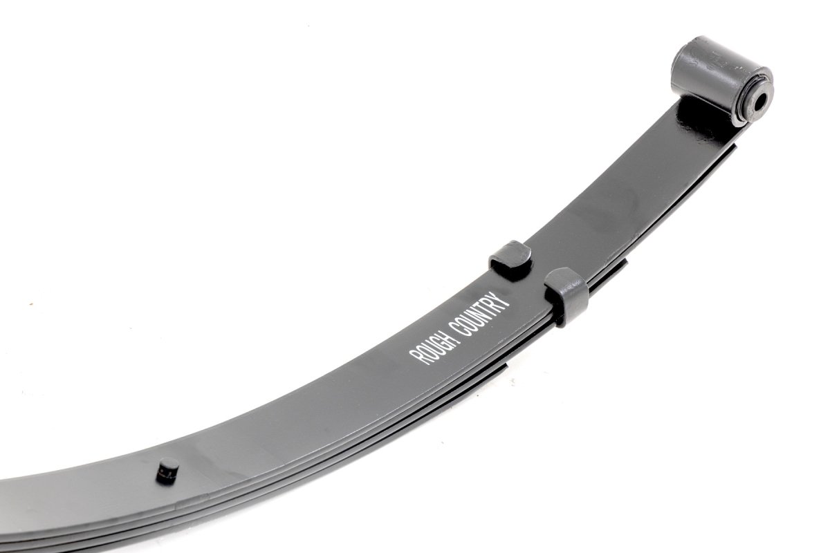 The multi-leaf structure with spring pads reduces friction, providing a smoother ride while extending your vehicle's suspension durability. The tapered leaves at the ends enhance flexibility, allowing your Jeep to adeptly navigate challenging terrains. The Rough Country kit also boasts a simple, 100% bolt-on installation, which can be completed in about 1-2 hours, depending on your vehicle's condition. Plus, it's backed by a five-year replacement warranty against defects, offering you peace of mind with this reliable product.