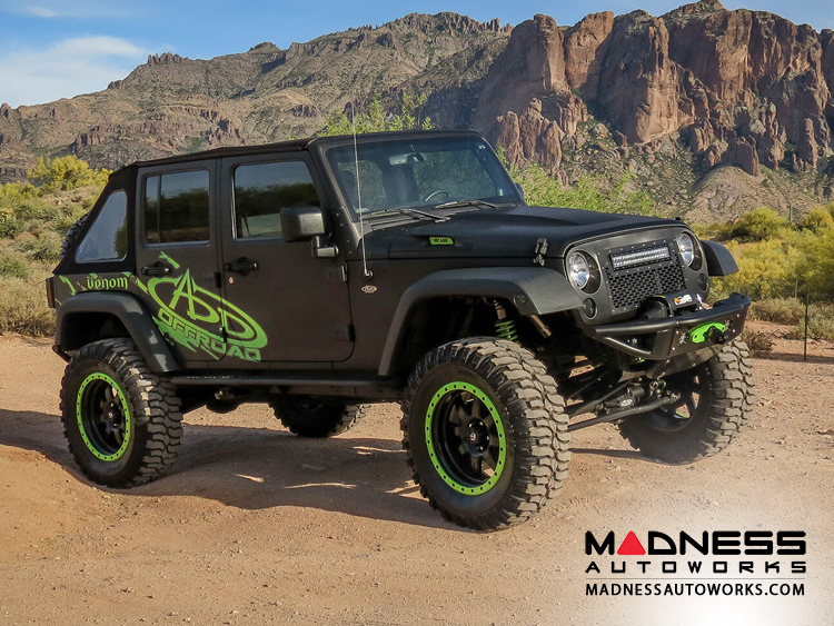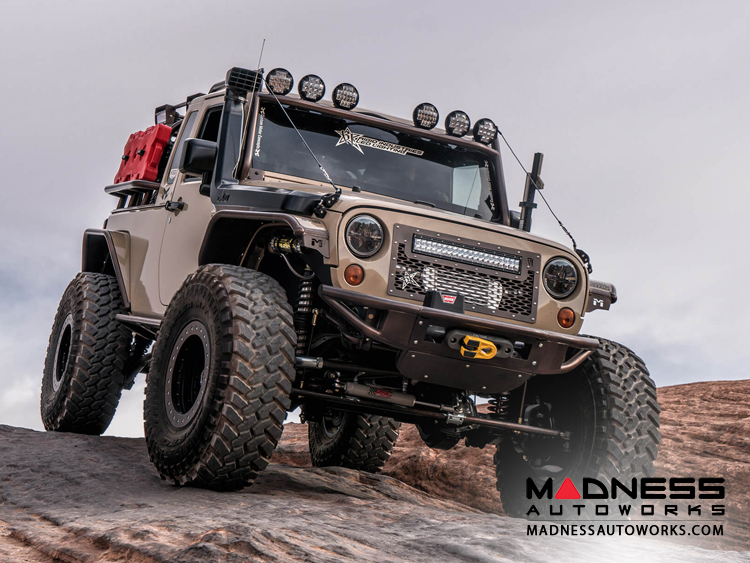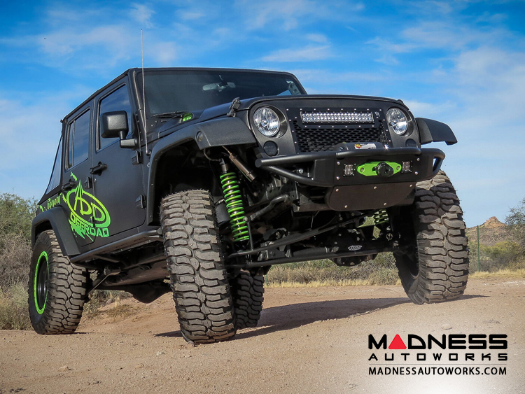 As the leader in the off-road aftermarket part industry and the first to introduce custom aftermarket hand built front bumpers for the Jeep Wrangler JK, Addictive Desert Design strives for quality! The Venom front bumper with winch mounts easily makes it to the top of the list with its construction using formed tube .120 wall steel and CNC cut aluminum panels, ensuring a tight and slim fit on your Jeep Wrangler JK all while maintaining factory line location. Keeping air flow and cooling in mind, the engineers at ADD designed this bumper with the winch mount inside the bumper allowing air to flow into the radiator.