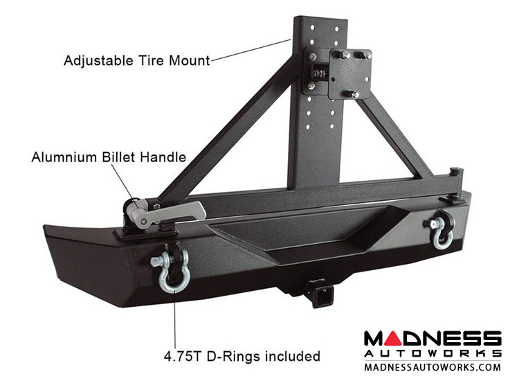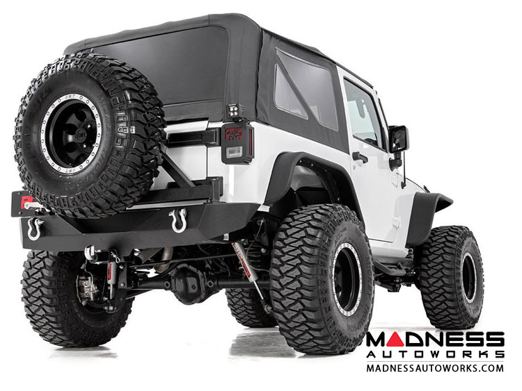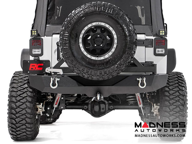 Beef up your JK’s rear end with Rough Country’s Heavy-Duty JK Rear Bumper with Tire Carrier! This stylish, durable steel bumper offers unbridled protection for the rear of your JK while giving you increased tire clearance for off-road articulation. With bold angles and contoured curves, this rear bumper is a true head-turner that’s sure to get attention.