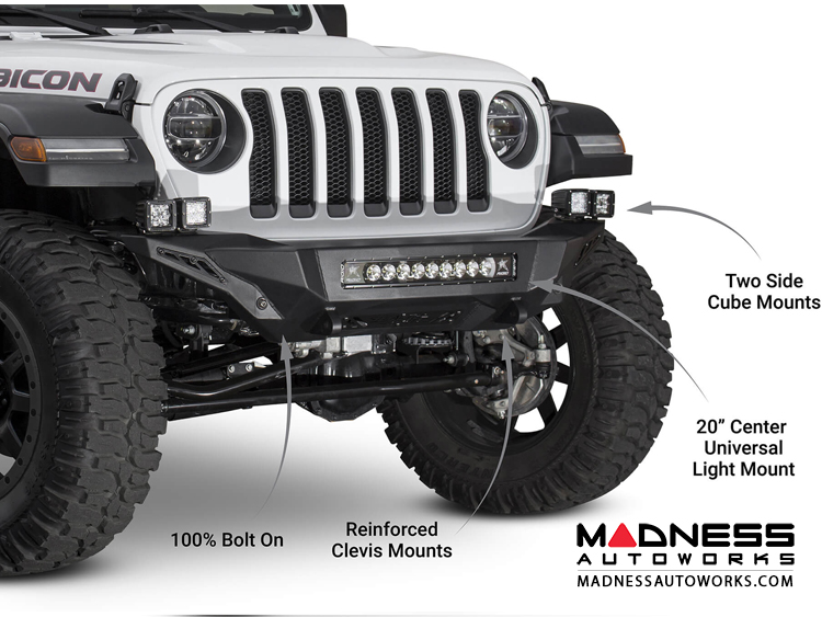 - Universal light mount in center; Up to 20" radius light bar or 5 cube lights
