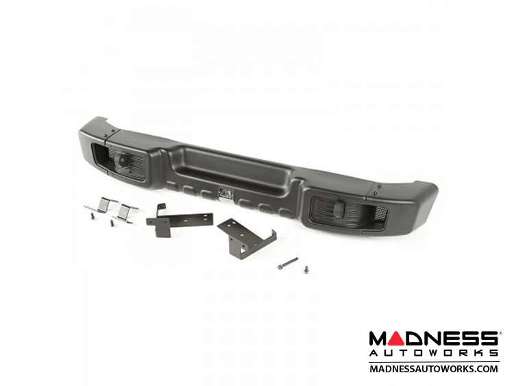 The Spartacus Rear Bumper is engineered for superior protection in a lightweight design. Featuring a stamped steel construction, this bumper provides intense coverage and protection without heavy plate for maximum off road performance. This rear Jeep bumper includes d-ring mounts for the upper hand in recovery situations and features removable bumper ends for improved tire clearance and departure angles when traveling off road.