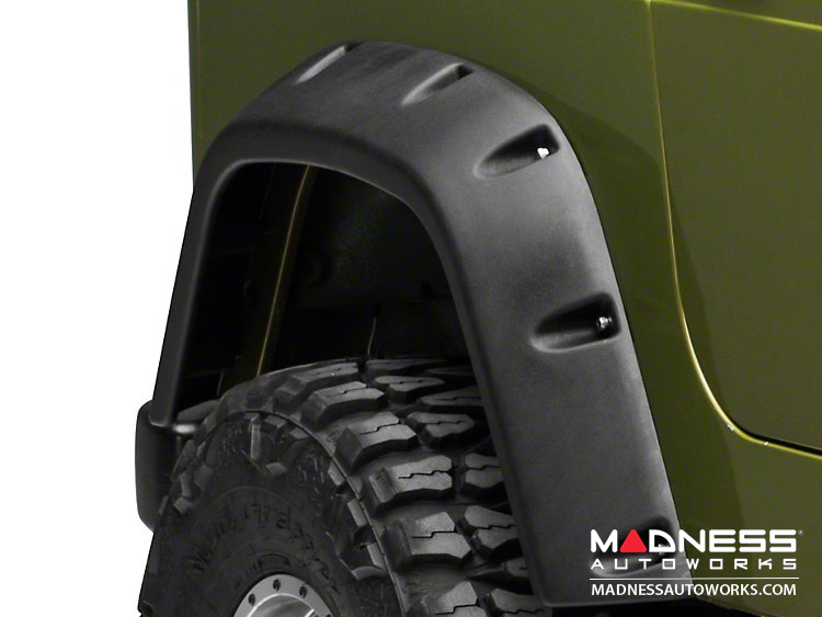 Rugged Ridge chose a durable thermoplastic for these fender flares. The ABS is resilient against impact from rocks and other road debris, and specially treated to resist damage from the sun’s UV rays. The sturdy ABS material has a slight texture to it, and with minimal effort, you can recolor them with whatever automotive-grade paint color you wish. Go for a crazy contrast, or simply match your Wrangler’s body color.