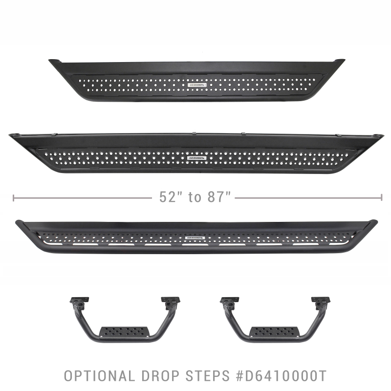 Enhance your Jeep Gladiator experience with the GOR Dom Extreme D6, designed to offer both functionality and style for your off-road adventures. Experience unparalleled convenience and safety with the Dominator D6 Side Steps, crafted to provide effortless access to your vehicle while ensuring superior protection along the rocker panel. Whether you're tackling rugged terrains or cruising city streets, these side steps offer a substantial 6-inch wide stepping area, perfectly crafted with a raised hex pattern to guarantee maximum slip resistance.