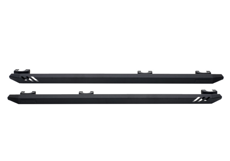The Rampage Rock Rail system is designed to provide superior protection against any obstacles you might encounter off-road. Whether you are tackling the most challenging trails or simply driving around town, these rails offer the perfect blend of form and function. Crafted from fully welded 3mm thick mild steel and coated with a heavy-textured black powder-coated finish, these rock rails are both durable and stylish, promising to add a sophisticated touch to your vehicle's appearance. Whether you select the bold double step or sleek single step rail, you can effortlessly remove them to reveal an unobtrusive base that shields your Jeep's body from rocks, debris, and other potential hazards.
