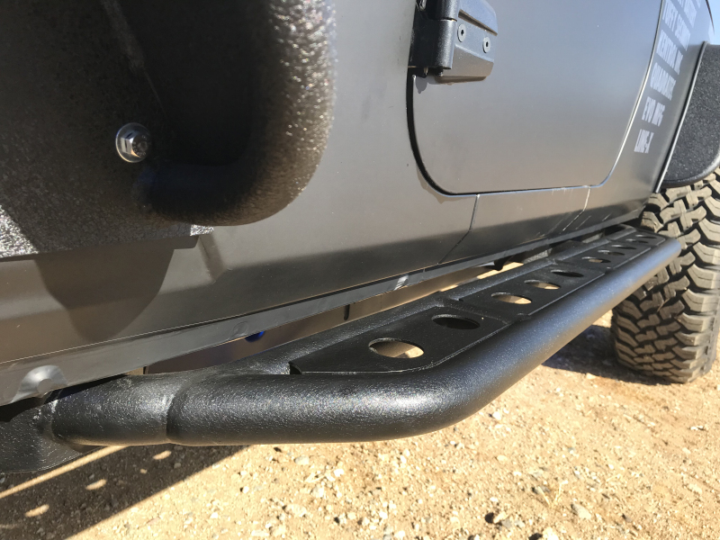 Installation of the Fishbone Offroad Step Sliders is straightforward, ensuring that you can quickly equip your Wrangler with these essential accessories without the need for complex modifications. Their robust construction reliably shields your Jeep's sides from potential damage, offering you the peace of mind needed during your most daring excursions.