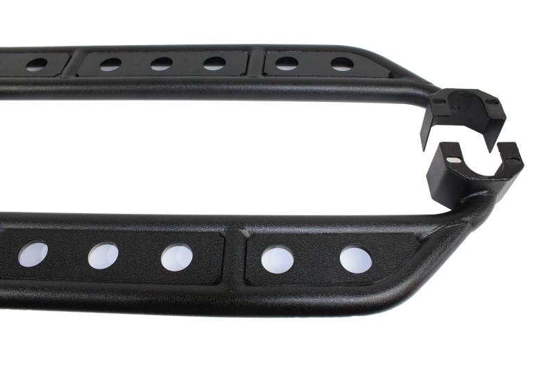 The Fishbone Offroad Step Sliders seamlessly blend into your Wrangler's design, featuring a two-stage black textured powder coat that not only complements your Jeep's exterior but also offers superior resistance to corrosion and harsh environmental conditions. Whether you're navigating rocky terrains or urban landscapes, these step sliders provide the solid footing and confidence you need while entering or exiting your vehicle.