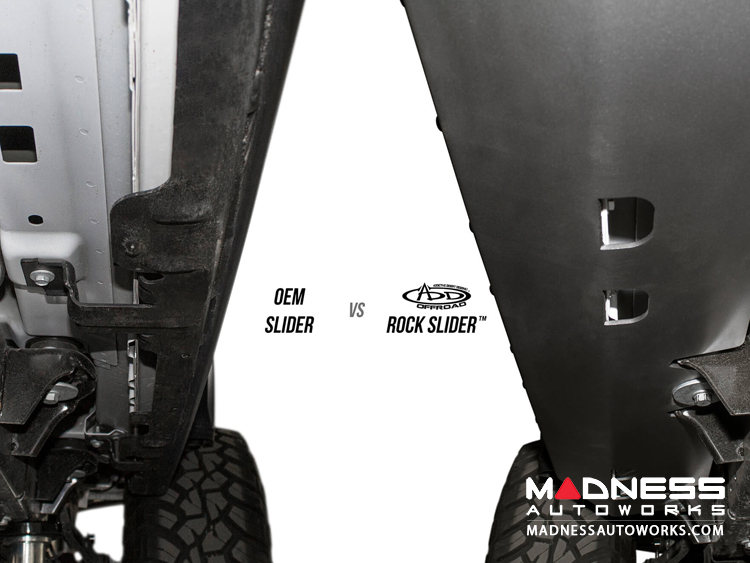 Each rock slider includes accommodations for additional lighting for your Wrangler. Five provided rock light mounts per step are universal and can mount any brand of rock light. Lights are aimed to allow the driver to brighten important parts of the trail that are otherwise hard to see.