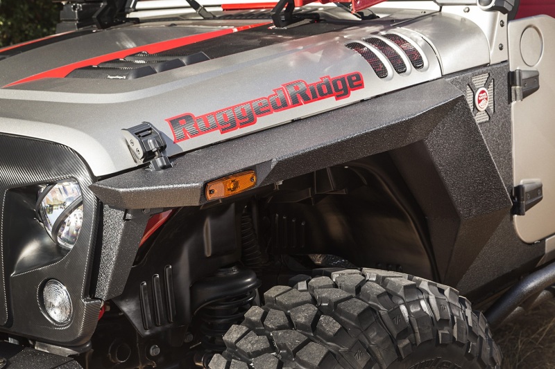 The Rugged Ridge Armor Fenders are a perfect match for the 07-18 Jeep Wrangler JK/JKU models. Installation is straightforward, allowing for bolt-on fitting alongside the included side marker light. Customers have the option to modify the existing OE wheel liners or opt for the recommended Rugged Ridge All-Terrain Wheel Liners for a truly robust installation experience.