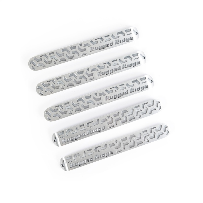 Transform your Jeep Wrangler JKU into an off-road beast with an aesthetic edge using the Jeep Wrangler JK - RUG Door Handles from Rugged Ridge. These elite door handle inserts are more than just functional; they are a statement of style and durability that adds a distinctive flair to your vehicle. Crafted meticulously from lightweight cast aluminum, each insert features a striking brushed finish complemented by a unique tread-inspired inlay. This thoughtful design gives your rig an eye-catching, custom touch ensuring you stand out on both the city streets and rough trails.