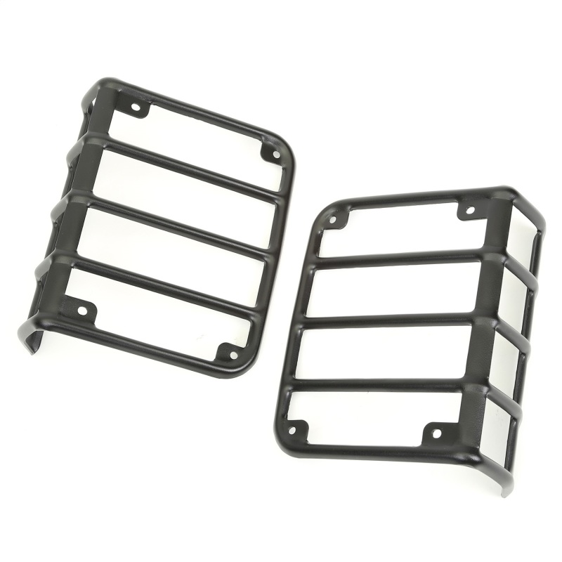 Crafted from durable powder-coated steel, these textured black Euro guards are built to withstand harsh conditions. They offer exceptional resilience against flying debris, ensuring that your taillights are shielded from potential damage whether cruising through dense wooded trails, rocky terrains, or city streets. Despite their robust construction, installation is a breeze with no drilling required, making it simple to upgrade your Jeep with minimal effort.