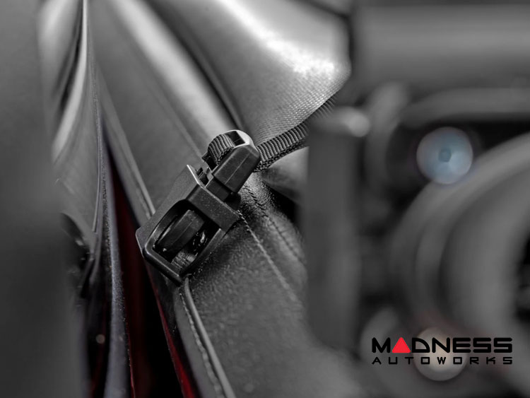 The all-weather seal is an impressive feature that protects your cargo from rain, snow, or dust, making this cover an essential year-round addition to your Jeep. Moreover, when you need to transport larger items, the nylon straps secure the cover in a convenient 2/3 open position, allowing flexibility and practicality. With its no-drill, easy installation and removal process, you'll find that enhancing your Jeep is straightforward and hassle-free. Delivered completely assembled, there are no loose parts to worry about, and the patented quick clamp system means no tools are required for installation.