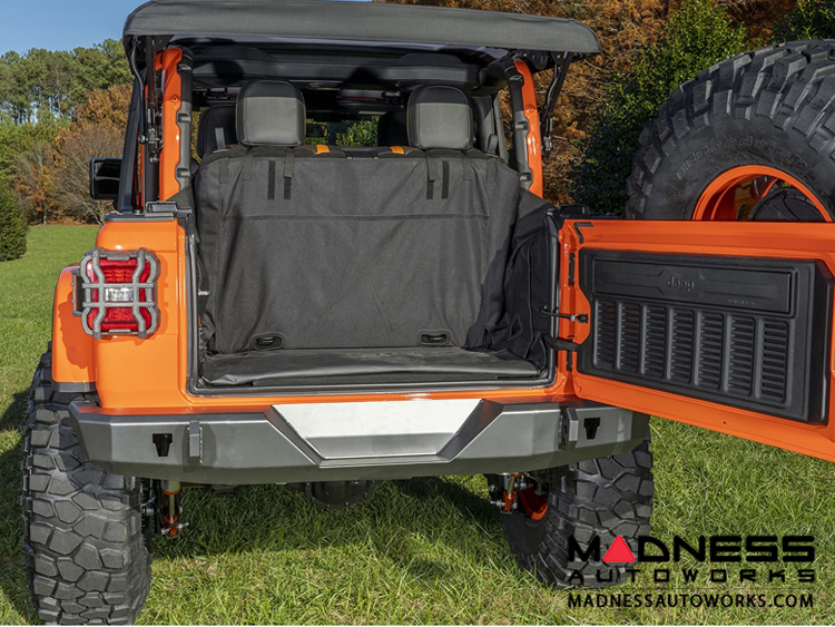 A versatile Jeep deserves versatile accessories. Keeping you on-the-go with ease, the rear Configurable Cargo Cover (C3) offers complete protection for the rear cargo area of your Jeep Wrangler JL, keeping your interior pristine throughout your daily use by protecting your carpet and plastic trim from damage, scratches, pet claws, dirt, and other debris. This custom made and functional accessory also allows for a pet-friendly space for your pet to rest during long road trips. The C3 Cargo Cover is compatible with rear fold and tumbles seats making it both flexible and functional! The cargo cover also sports water resistant material, a flip-out cover flap to keep dirt from falling into the rear tailgate door gap, and a built-in front curtain wall to keep items/pets from entering the front seat area. The unique side retention system ensures your cover stays securely in place as you load and unload. With its easy install and removal, the Rugged Ridge C3 Rear Cargo Cover gives you the protection you need, when and where you need it!