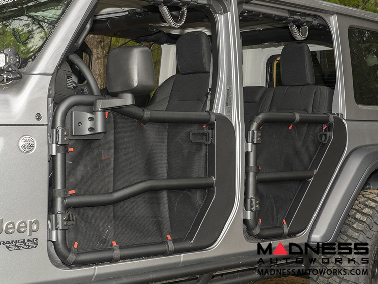 Having the Fortis tube doors on your Wrangler JL helps add to that open-air freedom while driving down the road or on the trails. Now with the Fortis Tube Door Covers, you can enjoy the same experience but with a better level of containment for you, your passengers and your belongings. Made from nylon reinforced mesh these covers give you a barrier between the outside of your Jeep and the inside. Choose between front, rear or both for your tube doors.