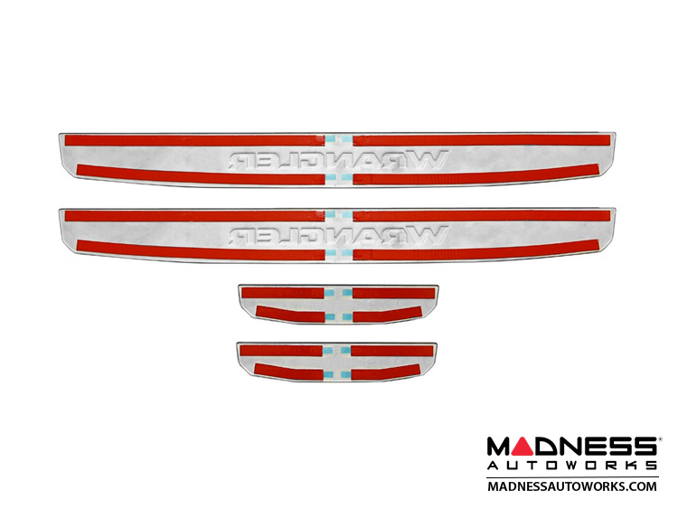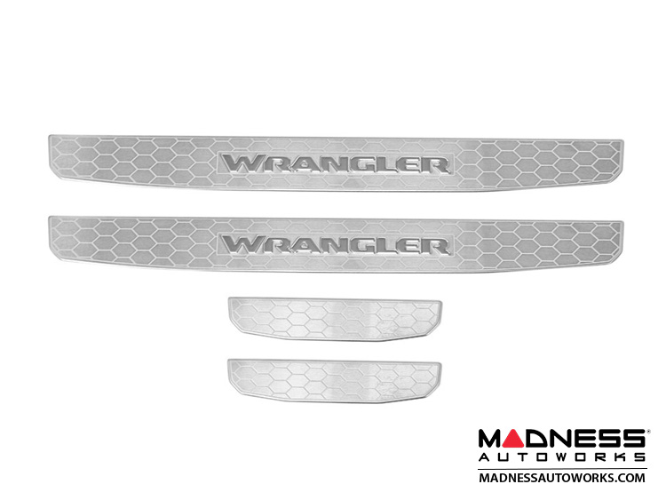 Give the door sills in your rugged 4-Door Jeep some additional scratch and scuff protection with this Mopar Stainless Steel Door Sill Guard Set. This set comes with two front door sill guards and two rear door sill guards to cover all four door sills in your JL!