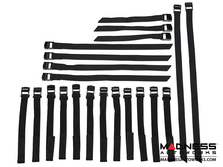 This Cargo Net System is not your average cargo netting. Made from heavy duty 600 Denier UV treated polyester, our system is waterproof, anti-static and tear resistant; the UV inhibitor prevents fading. It is not just strong, it is STRONG. Double layered borders sandwich the netting to prevent unraveling. Includes nickel plated steel and zinc alloy hardware. The netting is glue-bonded and then box-stitched to guarantee that it doesn't come apart under pressure from inside or outside forces.