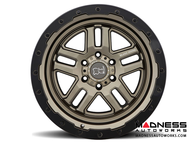 Jeep Custom Wheels (1) - Black Rhino - 17 x 9.5 - Barstow - Matte Bronze w/ Matte Black Lip Ring - (ETCHED BLACK RHINO SPOKE LOGO)