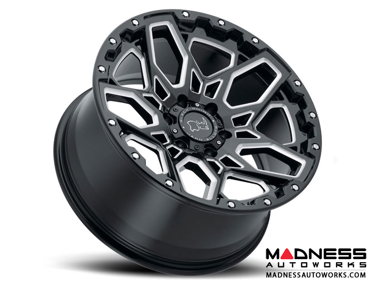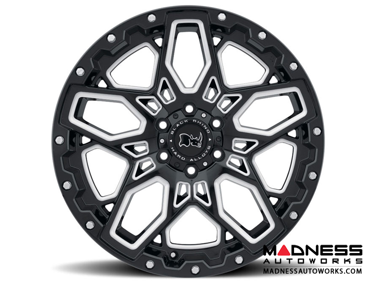 Jeep Custom Wheels (1) - Black Rhino - 17 x 9.5 - Shrapnel - Gloss Black w/ Milled Spokes