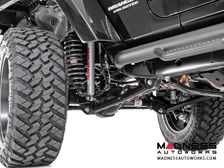 This Jeep Wrangler JK Unlimited Suspension Lift Kit with Control Arm Drop & V2 Monotube is the ultimate upgrade for your vehicle.