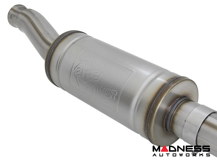 The large 3" mandrel-bent 409 stainless steel tubing outflows the restrictive factory exhaust to deliver gains of up to +9 horsepower and +8 lbs. x ft. of torque, as measured on aFe's in-house dyno.